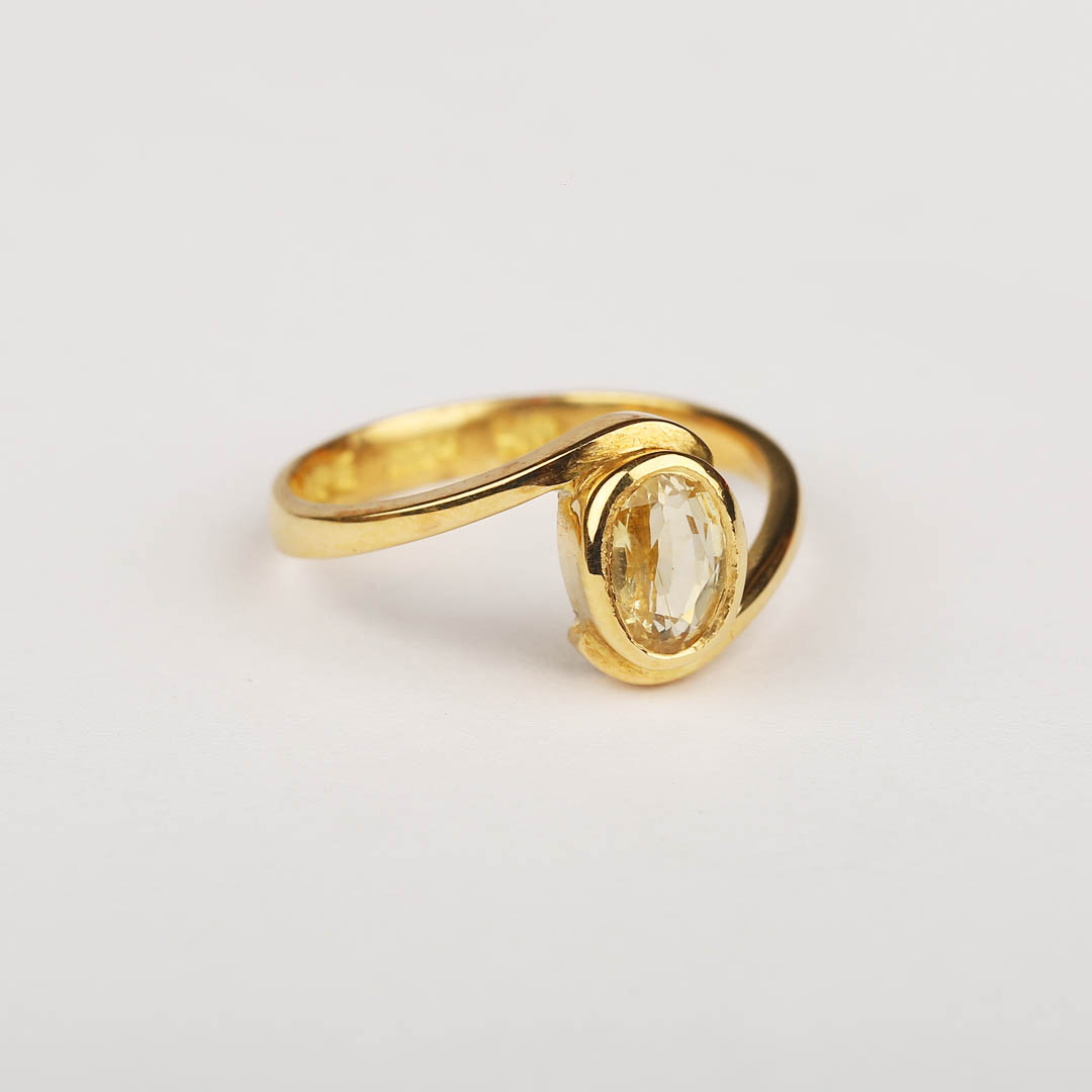 Yellow sapphire (Pukhraj) in Hindi and "Pushparaga In ancient Sanskrit, it is known as the "Guru Ratna" or gemstone of Jupiter (Guru), the planet representing wisdom, growth, and prosperity.